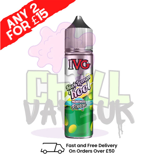 Experience a tangy and refreshing blend with Kiwi Lemon Kool IVG Shortfill Juice 50ML eLiquid – MENTHOL RANGE. This vibrant e-liquid combines the zesty sweetness of kiwi with the bright citrus kick of lemon, enhanced by an icy menthol finish for a cool, invigorating vaping experience that awakens your senses.