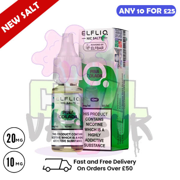Packaged in a convenient 10ml bottle, ElfLiq Pina Colada Nic Salt delivers consistent flavor and smooth vapor with every puff. Its tropical-inspired profile makes it an ideal choice for a flavorful, relaxing vape anytime.