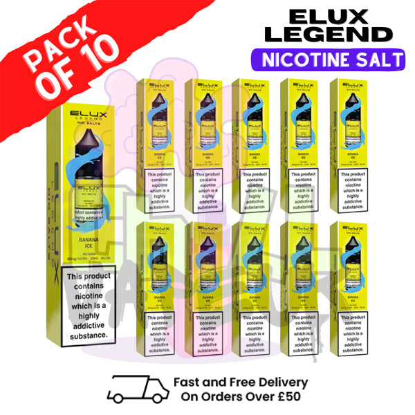 Experience a tropical and icy vaping sensation with Banana ICE Elux Legend Nic Salt BOX OF 10. This nic salt blends the sweet, creamy taste of ripe bananas with a refreshing icy finish, delivering a smooth and satisfying nicotine hit ideal for pod system users who enjoy fruity and cooling flavours.