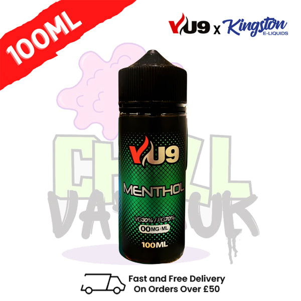 Menthol Shortfill eJuice 100ML Eliquid – VU9 x Kingston delivers a crisp, refreshing menthol flavour that cools and invigorates with every puff. Perfect for menthol lovers, it offers a smooth, icy inhale and a clean, revitalising exhale for a satisfying all-day vaping experience.