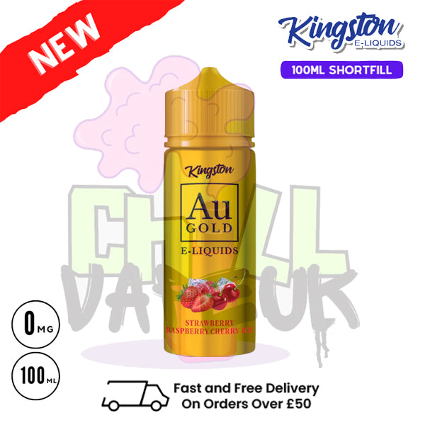 Strawberry Raspberry Cherry ICE – AU Gold Kingston 100ML Eliquid delivers a vibrant, fruity medley with a cooling icy finish. Sweet strawberries, tangy raspberries, and succulent cherries combine to create a refreshing, layered vape that excites the taste buds. The icy menthol undertone adds a crisp, invigorating chill, perfect for all-day enjoyment.