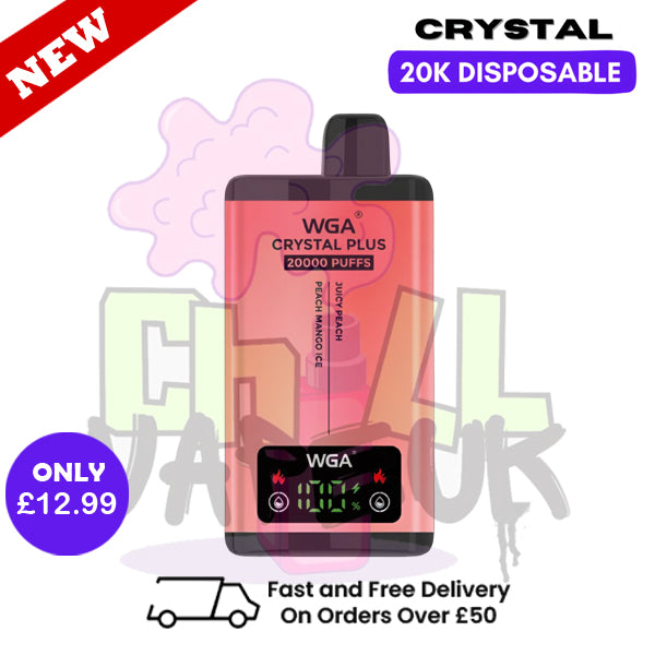 The Juicy Peach Crystal Plus 20K Vape WGA Disposable Kit delivers a sweet and succulent peach flavour, offering a refreshing and satisfying vaping experience. With up to 20,000 puffs per device, it is perfect for heavy vapers and those who enjoy extended vaping sessions without the need for refilling or charging. Its sleek, portable design makes it ideal for on-the-go use.