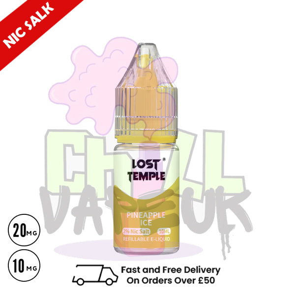 Enjoy the tropical sweetness of pineapple with a crisp icy menthol finish in LOST TEMPLE 'Pineapple ICE' Nic Salt. This smooth nic salt blend delivers a refreshing and satisfying vaping experience, perfectly combining juicy pineapple flavour with a cool menthol twist for a smooth puff.