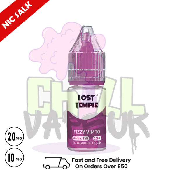 Experience the fizzy, fruity taste of classic Vimto with LOST TEMPLE 'Fizzy Vimto' Nic Salt. This 10ml nicotine salt e-liquid delivers a smooth and satisfying vaping experience, blending sweet grape, blackcurrant, and raspberry flavours with a hint of sparkling fizz.