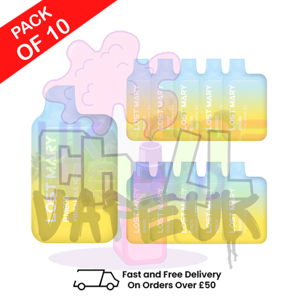 Experience the icy tropical sweetness of pineapple with Pineapple ICE Lost Mary 600 Puff Bars. Each bar delivers a smooth and refreshing vaping experience, offering up to 600 puffs per device.