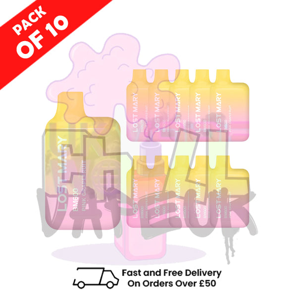 The Pink Grapefruit Lost Mary 600 Puff Bars Pack of 10 is a premium set of disposable vapes designed for a smooth and refreshing vaping experience. Each bar delivers up to 600 puffs of consistent vapor, making it ideal for both beginners and experienced vapers. The pack of 10 ensures extended use and excellent value.