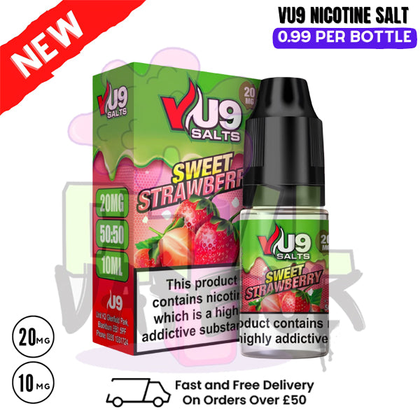 The Sweet Strawberry Nic Salt 10ml by VU9 delivers a juicy, natural strawberry flavour with a smooth throat hit, creating a delightful vaping experience. Formulated with nicotine salts, it ensures fast absorption and consistent flavour, making it perfect for use in VU9 pod devices.