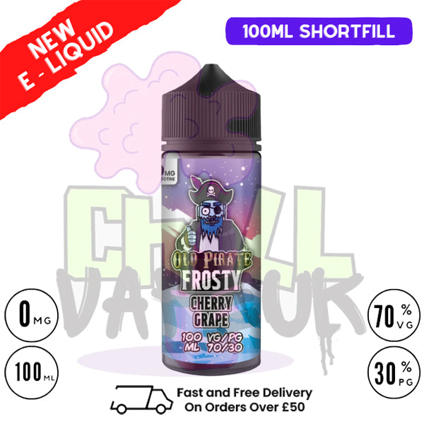 Embark on a flavour voyage with Cherry Grape Old Pirate Frosty 100ml Eliquid, where rich, juicy cherries meet the sweet, succulent taste of fresh grapes. This delicious fruit pairing is then cooled with a frosty menthol finish, creating a smooth, refreshing vape that’s perfect for any time of day. Every puff delivers a burst of ripe, tangy sweetness balanced with an invigorating chill.
