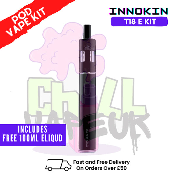 The Black Innokin Endura T18E Starter Kit combines elegance and practicality in a sleek black design, making it a perfect choice for both beginners and experienced vapers. Its ergonomic build ensures comfort during use, while delivering consistent vapour and flavour with every puff.