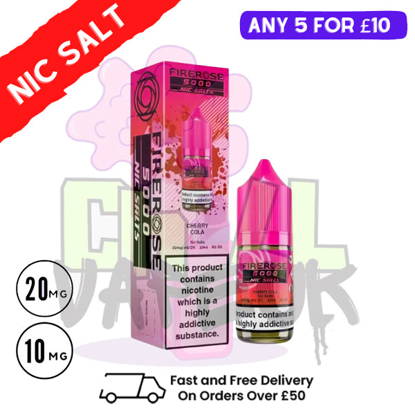 Enjoy a fizzy and sweet vaping experience with Cherry Cola Firerose 5000 10ML Nic Salt. This e-liquid combines the classic taste of cola with a rich cherry twist, delivering a smooth and satisfying nicotine hit that’s perfect for pod system users seeking a fun and flavorful soda-inspired vape.