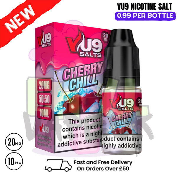 The Cherry Chill Nic Salt 10ml by VU9 delivers a sweet and refreshing cherry flavour with a cool menthol twist, providing a smooth and satisfying vaping experience. Formulated with nicotine salts, it ensures fast nicotine absorption and consistent flavour with every puff.