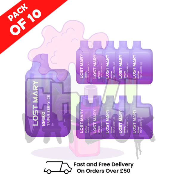 The Triple Berry ICE Lost Mary 600 Puff Bars Pack of 10 is a premium set of disposable vapes designed for a refreshing and flavorful vaping experience. Each bar delivers up to 600 puffs of smooth, consistent vapor, making it suitable for both beginners and experienced vapers. The pack of 10 ensures extended use and excellent value.